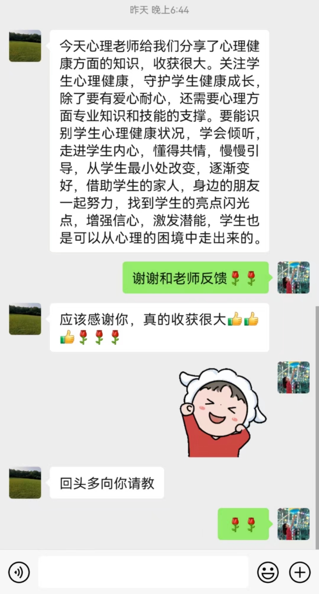 交流结束后,参会老师们纷纷表示受益匪浅。大家表示不仅学到了更多的心理学专业知识,而且认识到了自己之前在教育教学工作中存在的认识误区,同时对如何与学生进行沟通交流有了新的认识。最后,教学校长胡庆周进行总结,胡校长指出心理教育工作在班主任工作中的重要性,并希望班主任能够提高认识,学以致用,将学生心理健康工作当做班级建设的重点工作。