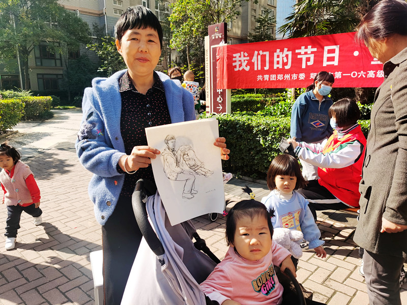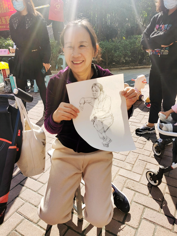 “你看这画儿,你看看,这是我,这学生画的真好,谢谢了小姑娘,我活这么大岁数还没人给我画过像呢,我得好好保存住!”晖达小区里的一位七旬老大爷捧着自己的素描画像激动地说道。