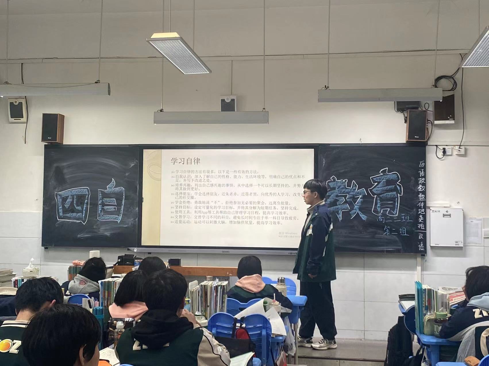 2024年3月25日星期一,在下午的班会课,高二年级的同学们迎来了一场主题聚焦于“四自”教育的班会课,本次班会课旨在引导同学们养成“生活自理、学习自主、行为自觉、情绪自控”的“四自”习惯,以此提升个人素质,促进全面发展。