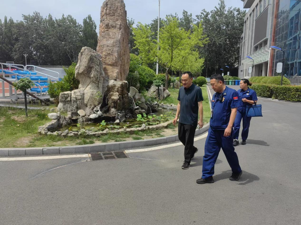 副校长范卫斌陪同东区消防大队王参谋检查我校消防安全