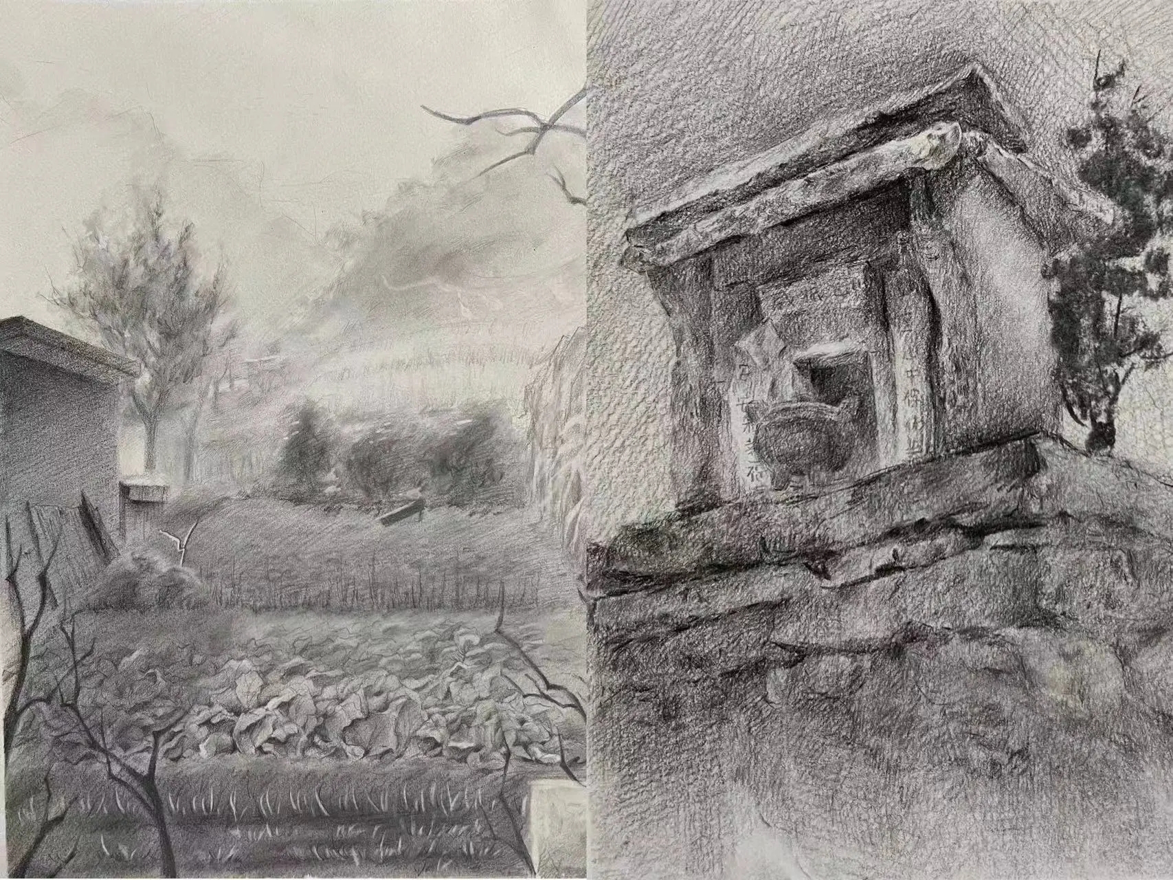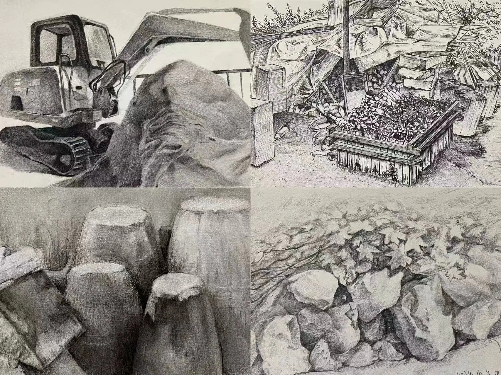在这里,同学们丹青有妙手,执笔著诗行,在色彩的冷暖之间熟练运用技巧,也在线面的协调中收获了初步感知。他们不仅亲近了自然,也在自然中汲取了创作的灵感,成为自己以后创作用之不竭的素材源泉。