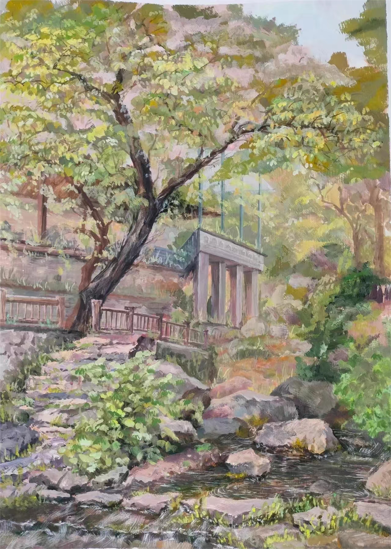 石板岩十日写生匆匆而过,郑州市第一〇六高中的写生也接近尾声。高一同学在草庙村的素描写生收获颇丰,他们在青山绿水之间用淡雅的笔调勾勒美景之轮廓,神形兼备,细致入微;高二年级在高家台的色彩写生也是收获满满,一幅幅美不胜收的画卷呈现眼前,美景跃然纸上,瑰丽鲜活的色彩讲述着大千世界的五彩缤纷,也照耀着学子内心美感的斑斓多彩。