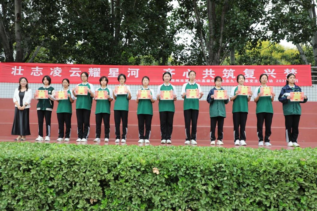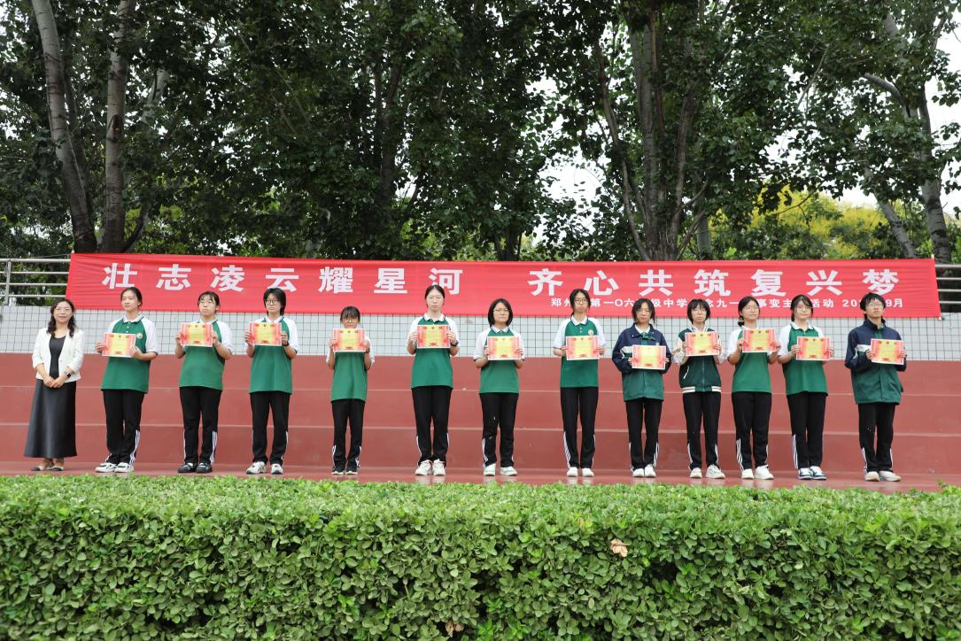 在9月15日的全校升旗仪式上,副校长张宏为高二、高三暑期作业获得优秀奖的学生代表颁发奖状,并充分肯定了他们假期的努力与成长。
