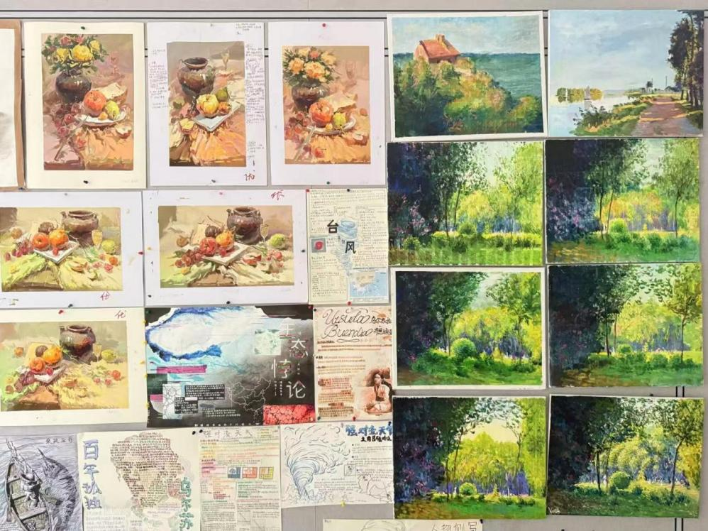 本次展览将美术作品与文化课作业置于同一空间并行呈现,形象地诠释了学校“美术与文化双翼齐飞”的教学理念。两类作品虽形式各异,却共同体现出学生综合素养的提升和全面发展的追求。展览不仅是对个人学习成果的检验,更是班级整体学风、教风与校园文化的集中展示。