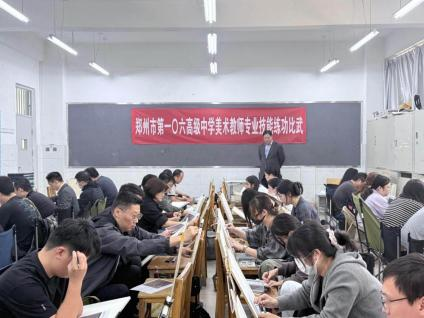郑州市第一〇六高级中学美术教师技能大赛每学期举办一次。多年来,不仅为教师们提供了展示与交流的平台,更有效提升了美术教师队伍的专业化水平,为深化学校艺术教育特色、打造美育教学品牌,以及提升新时代美育人才培养质量注入了新的动能。学校将持续聚焦教师专业成长需求,搭建更多教研与竞技平台,不断推动学校教育教学质量迈上新台阶,为培养更多兼具审美素养与创新能力的优秀学子贡献力量。