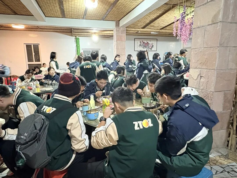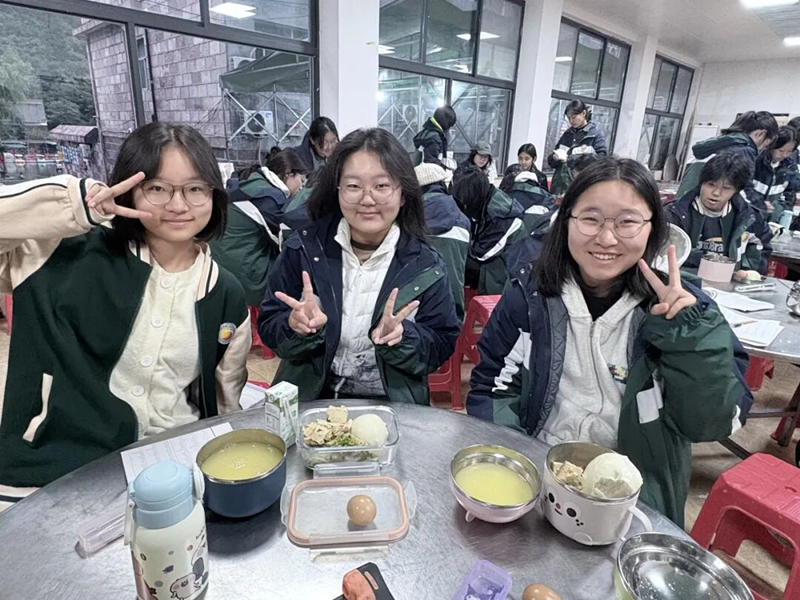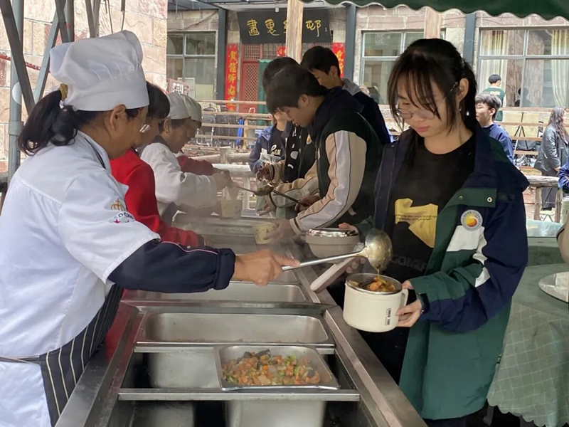 早读之后,同学们有序进入食堂。松软的馒头、金黄的煎蛋、热气腾腾的米粥,还有各色农家风味的炒菜,一一盛入碗盘。班主任走近学生餐桌,温和地叮嘱道:“要好好吃饭,只有营养充足,创作才更有力量。”班主任老师在一旁悉心陪伴,如同家人般关怀学生的饮食喜好,让离家的同学倍感温暖。上午的写生课程结束,荤素搭配的饭菜已准备妥当。同学们围坐一起,一边享受美食,一边交流着上午绘画的心得体会。雨雾透过窗户飘洒,带来微微凉意,萦绕在餐桌上的惬意中。饭后,同学们陆续回到宿舍午休。班主任老师轻声巡视寝室,逐一检查午休纪律,督促大家尽快休息,以饱满的精神状态迎接下午的写生活动。