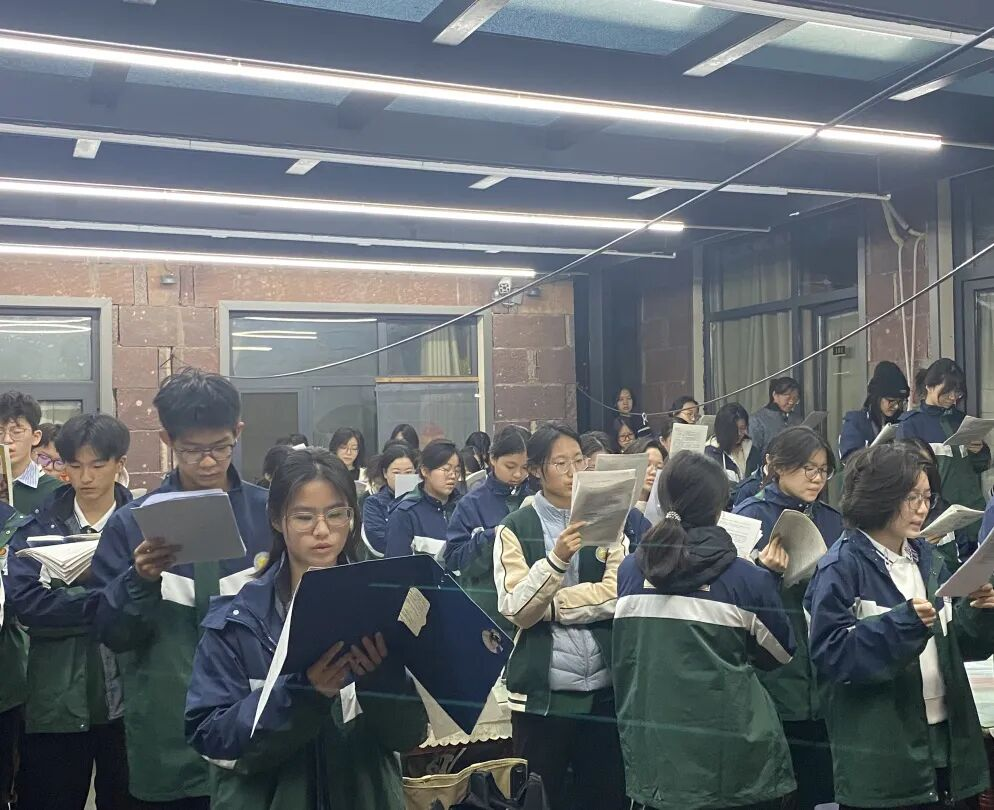 晨光熹微中,琅琅书声唤醒了沉睡的山谷。清晨六时,天际才刚泛起鱼白,层峦叠嶂后的朝阳犹抱琵琶半遮面,写生基地的同学们已精神抖擞地开始了太行山之旅的第二个清晨。虽置身山水画卷,大家求知的热情反而被山间沁凉的晨风点燃,个个手持书卷放声诵读。清越的读书声如春涧鸣泉,在群山间荡漾开层层求知的涟漪。班主任们穿行在晨读的队伍中,目光中盈满欣慰,用晨曦中的守护诠释着教育最本真的模样。