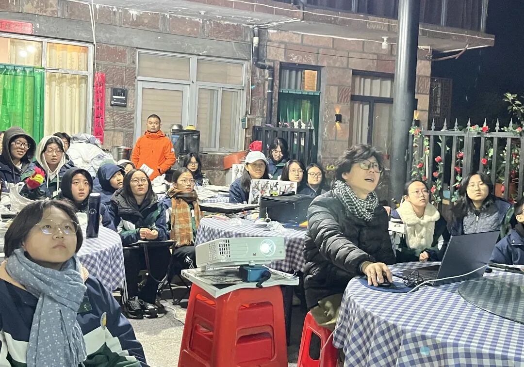 夜幕四合,晚餐的余温尚未散尽,白日写生的喧嚣亦未完全沉寂,美术教学的另一段乐章便已悄然奏响。老师们将学生们日间的丹青之作,一一投影于幕布之上,围绕每一幅作品的笔触、浓淡、构图、意蕴,逐一品评,细致剖析。凡遇点睛之笔,精妙构思,同学们的掌声便会由衷响起,钦慕的目光亦如星子般汇聚;若论及共性之惑,普遍之弊,师长则会反复提点,殷殷嘱托,以期众人共勉,互励互进。夜渐深,月朗星稀,这峡谷中的点点灯火,不仅照亮了画板,更照亮了艺术之路上师生们共同前行的方向。