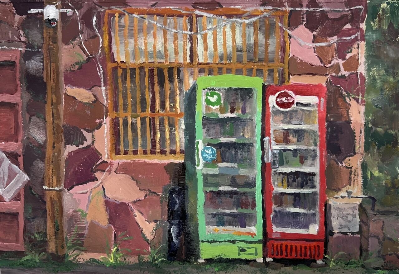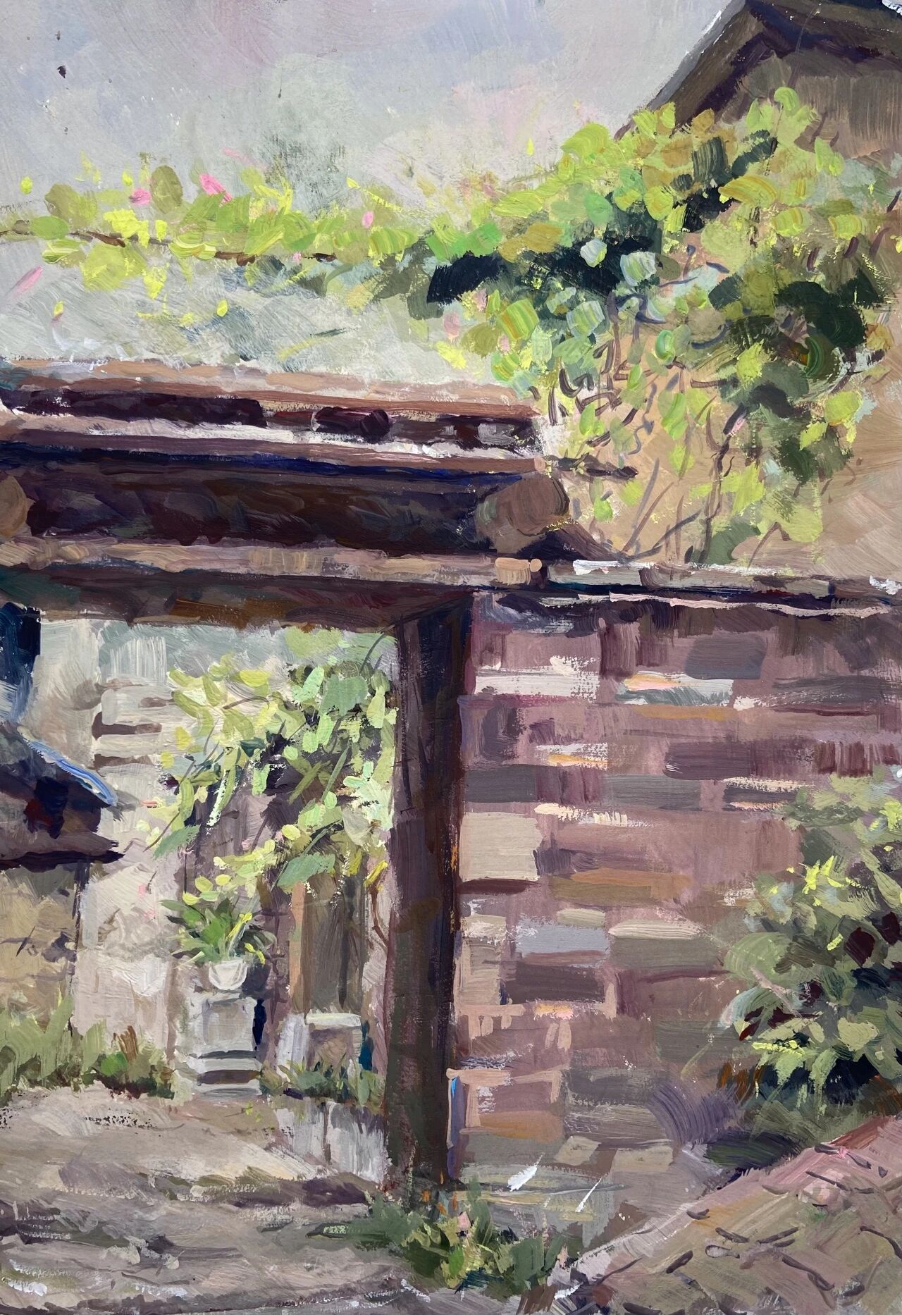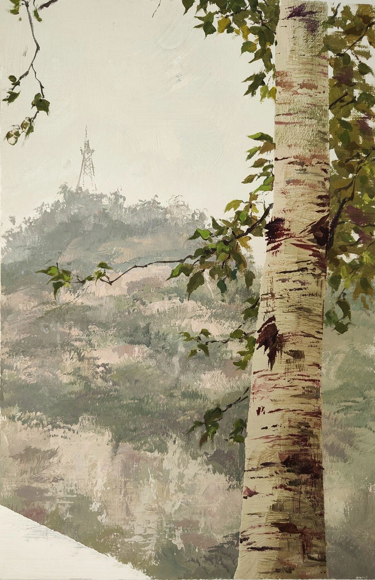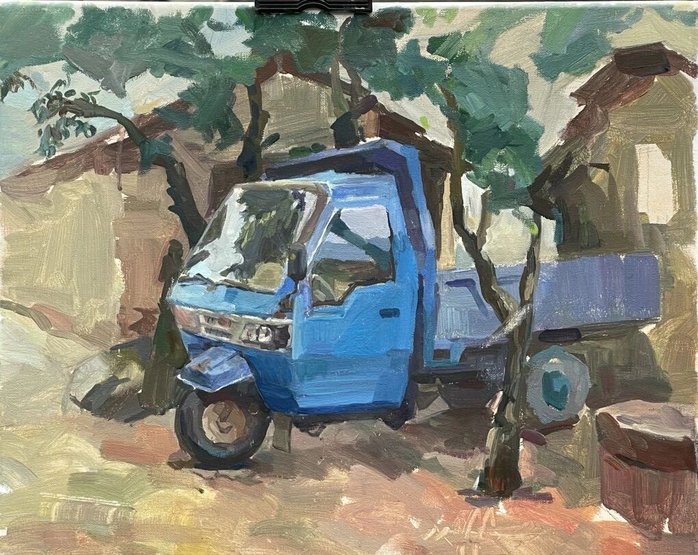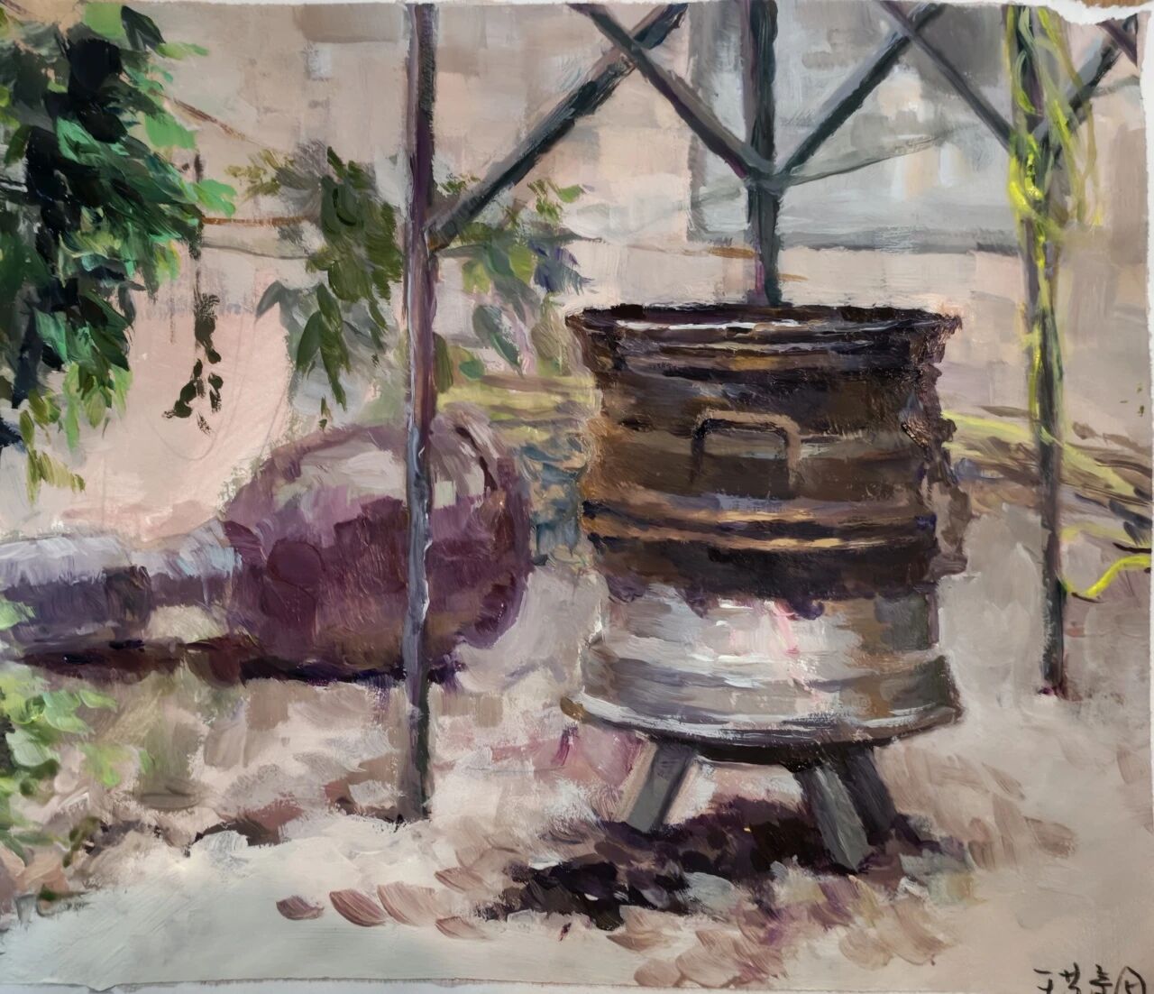 十月的石板岩完全没有了往日的清爽与冷峻,湿漉漉的雾水时不时从峡谷的另一端蔓延开来,混沌的天空和逐渐失色的悬崖悄悄融合,光影变得晦涩而迷蒙,这无疑给学生们作画增添了麻烦。同学们无惧这惨淡的天气,反而静下心来观天地而雕细微,一幅幅精彩的画作也呈现出来。挑战磨砺了意志,意志点染了心性,心性塑造了艺术。