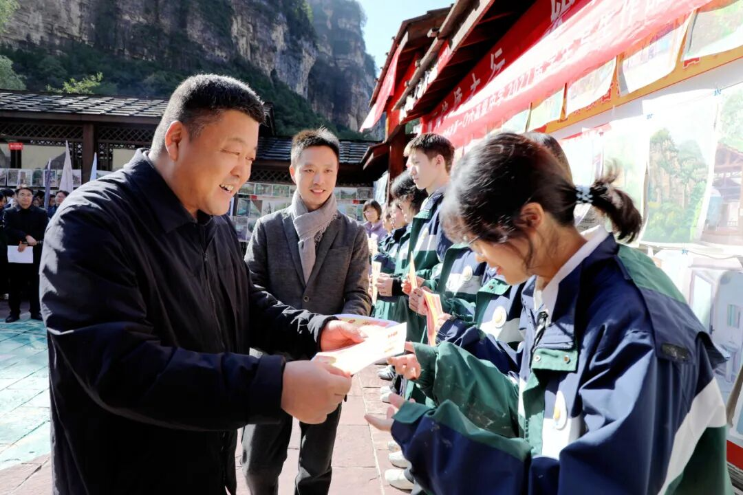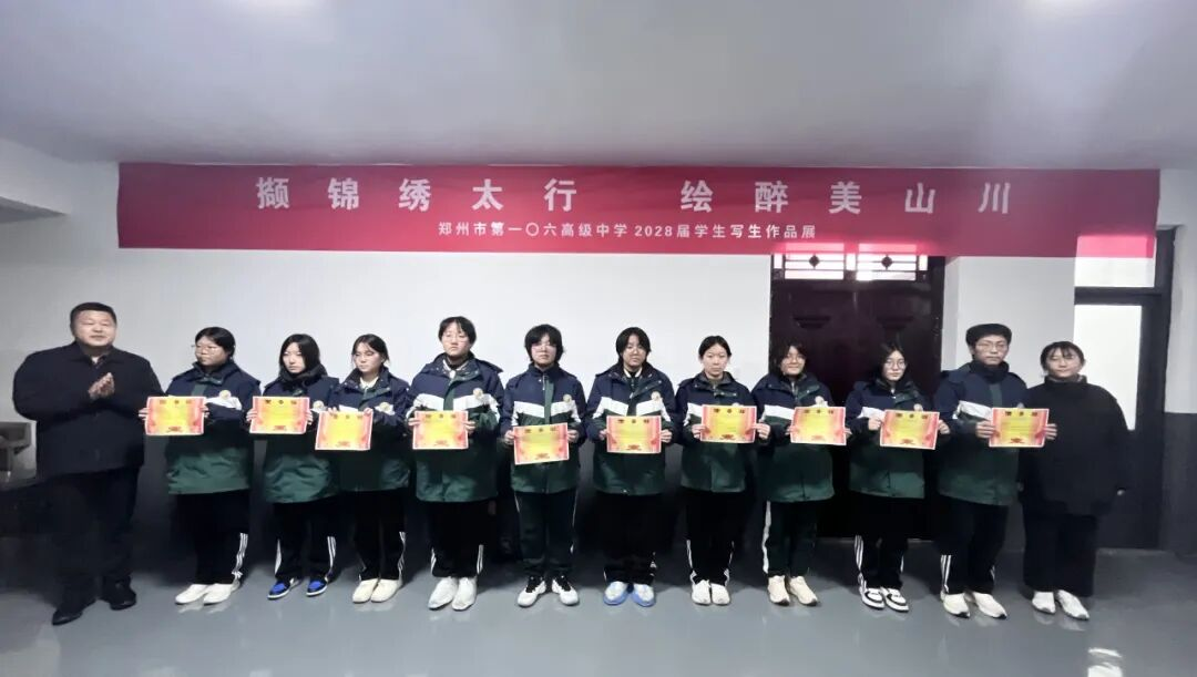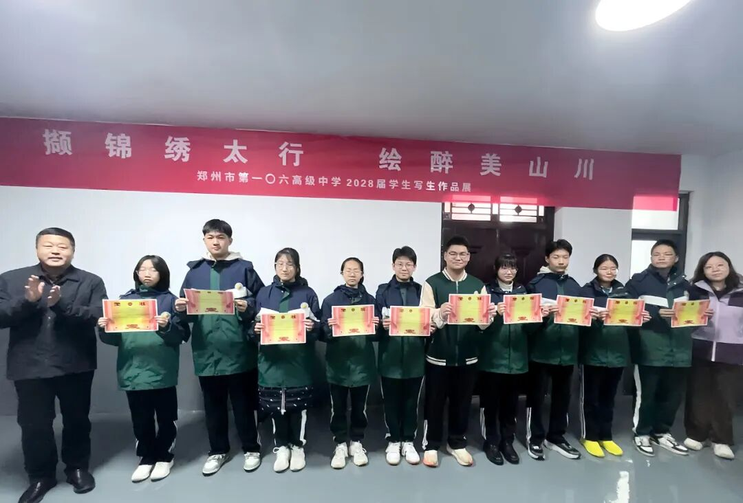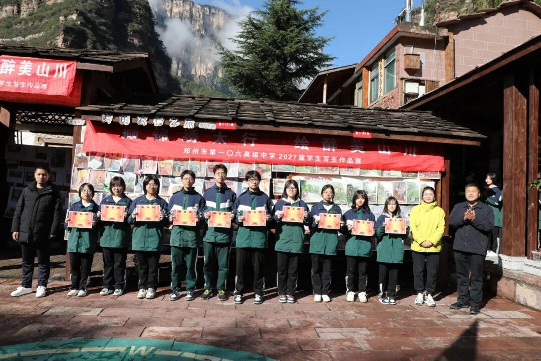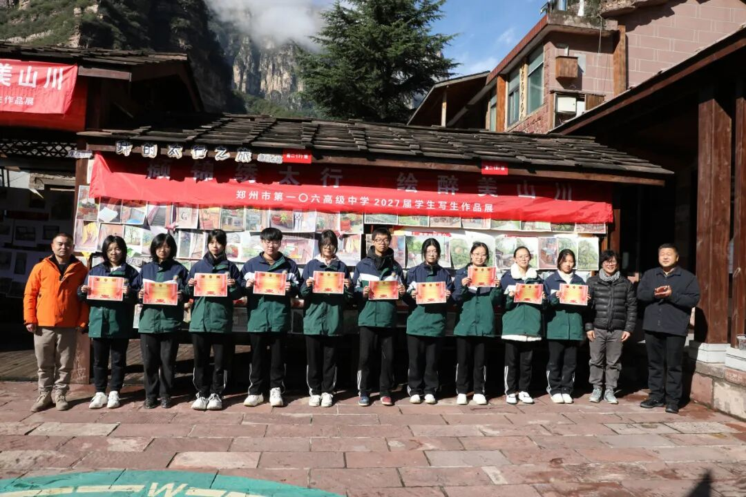 为展示学生优秀画作,促进同学之间学习交流,郑州市第一〇六高级中学高一、高二年级在石板岩举办了写生优秀作品展。校党委书记李明德参加了以“撷锦绣太行,绘醉美山川”为主题的学生画展并为获奖学生颁发奖项。