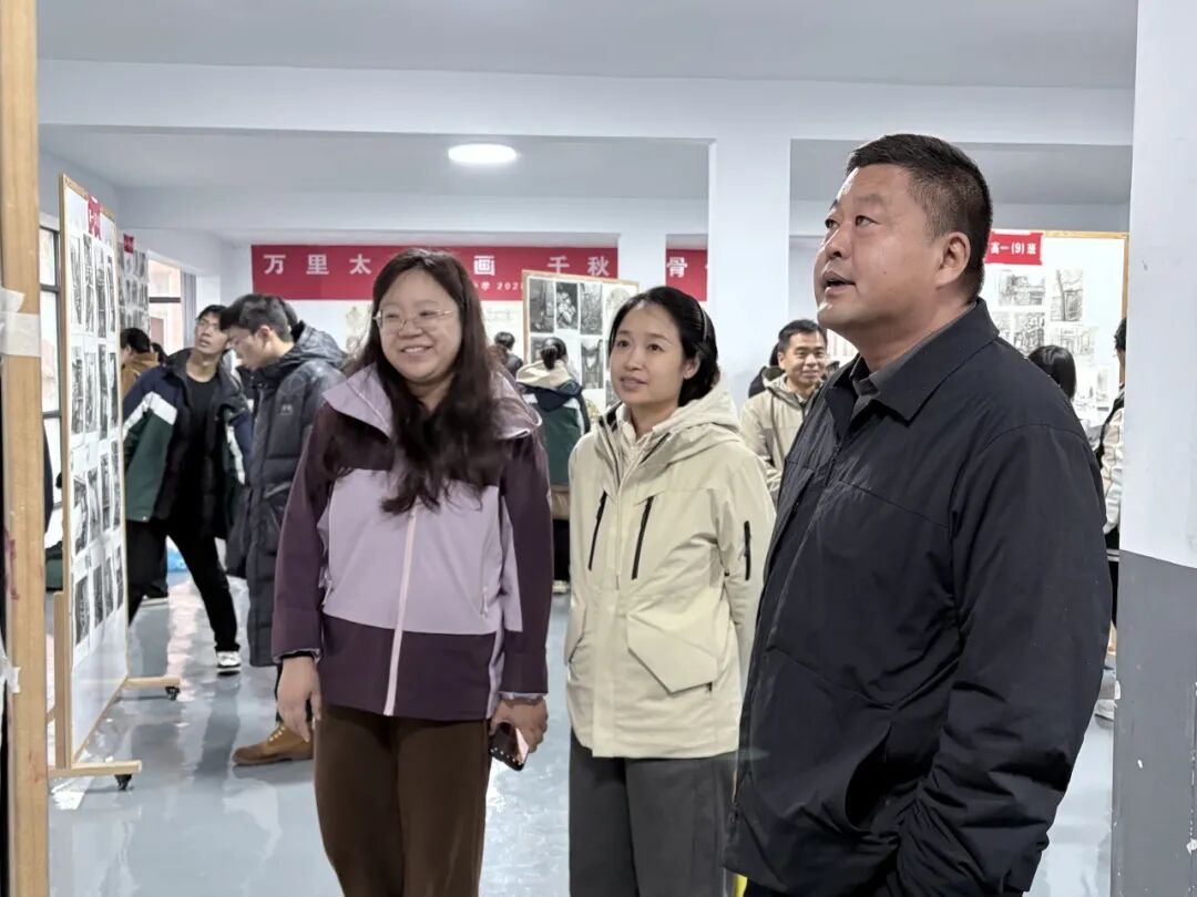 在参观学生画展过程中,李书记频频驻足,对学生笔下异彩纷呈、充满活力的作品不吝赞赏,并勉励大家要继续发扬勤勉笃行、吃苦耐劳的优良作风,以期再创佳绩。同时,他也向辛勤耕耘的美术教师们表达了深切的关怀,期望各位专业导师能人尽其才,精进指导,鼓励学生们在艺术天地里无畏探索、纵情表达——须知,艺术的言语,本应如星河般璀璨,绚烂多姿。