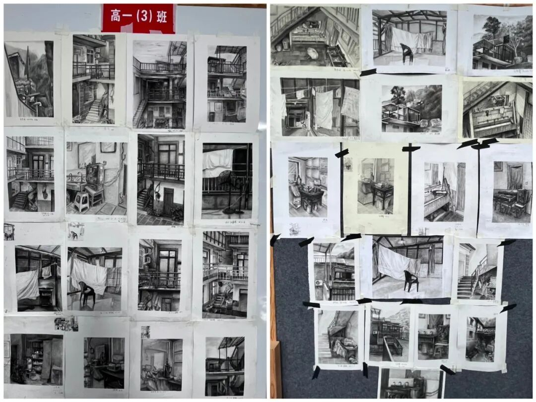 为保障画展圆满呈现,班主任与美术教师通力协作,细致勘验展厅环境,并精心规划布展方案。师生同心协力,共同完成了展陈布置的各项工作,为展览的顺利启幕进行了周密筹备。