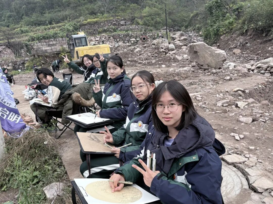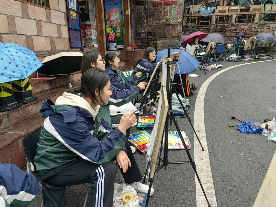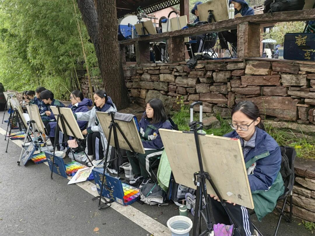 为检验写生所得,离别之际,同学们以一场美术写生测试 作为深情的告别礼,用笔墨倾诉对这片灵山秀水的无尽眷恋。