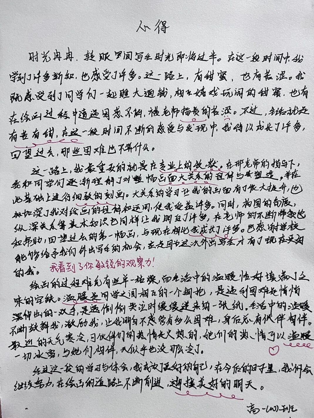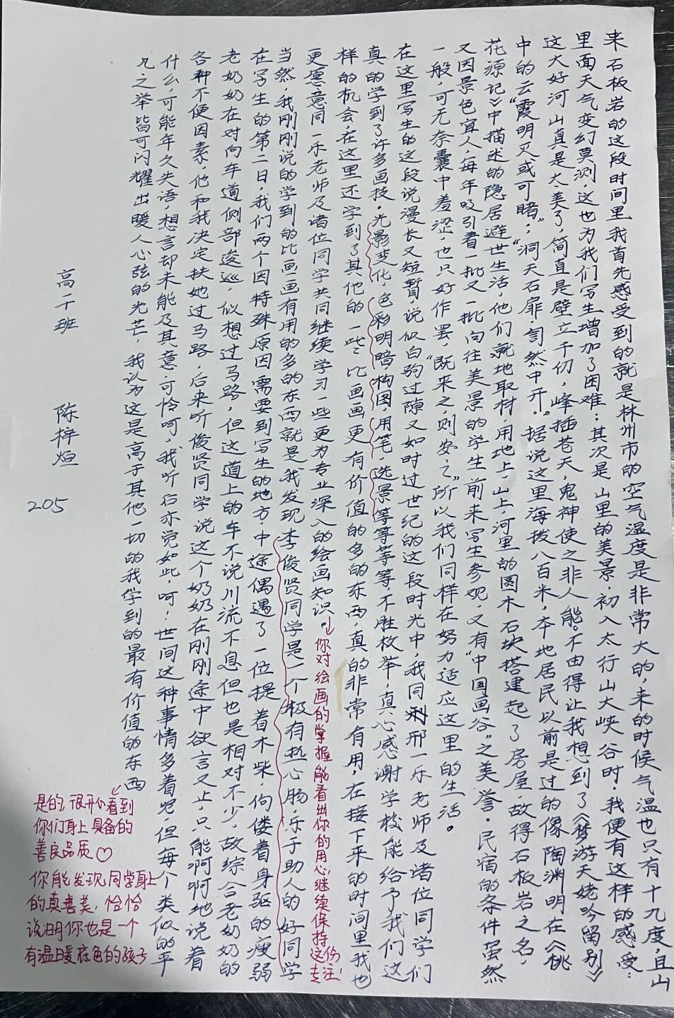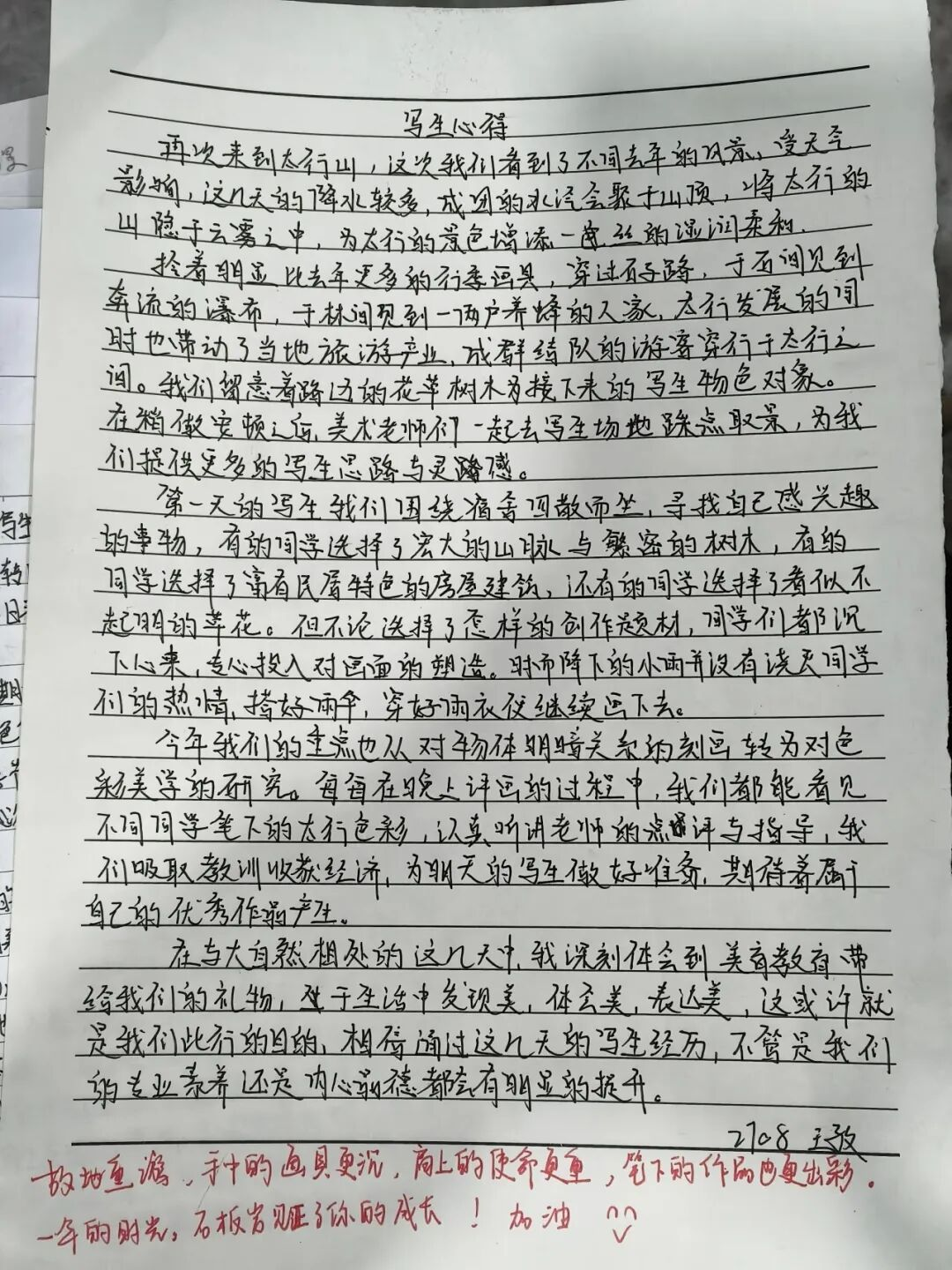 班主任老师始终悉心照料,从清晨的早读陪伴,到夜晚的查寝关怀,将学生的生活与学习挂在心上。坚持每日批改学生心得,精准把握每个人的心理动态,用时刻的陪伴给予学生安心。正是师生同心、共同努力,才织就了这片安全、专业又满含温暖的写生天地。