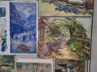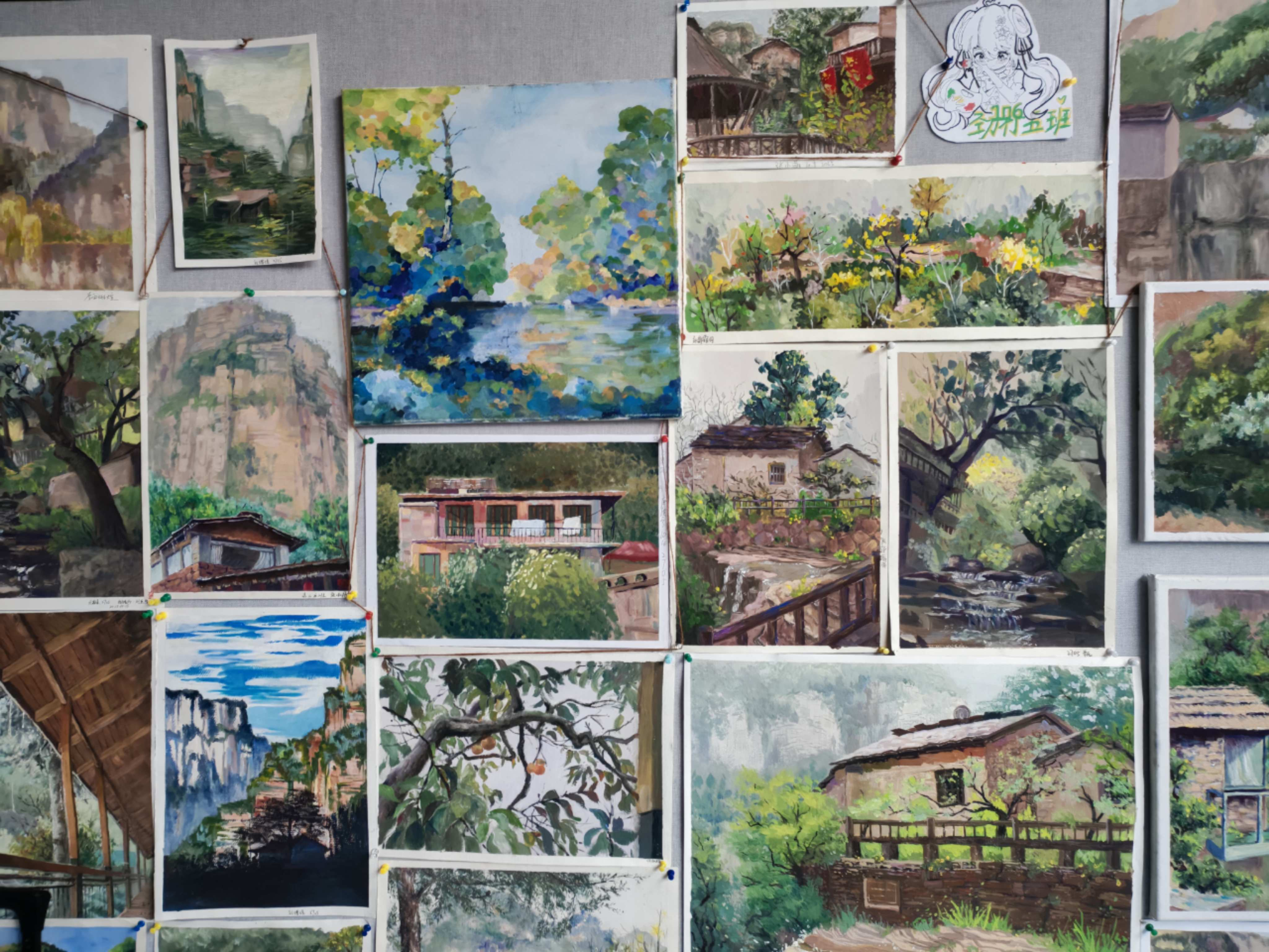 走进展厅,一幅幅色彩饱满、笔触生动的画作依次排开,瞬间将观者带入石板岩的壮丽山水之中。本次展览展出的作品题材丰富,构图新颖,既有对自然风光细腻的刻画,也有对光影色彩大胆的表达。尤为可贵的是,“各班方向明确”——有的班级侧重于对自然光影的捕捉,画面充满空气感;有的班级专注于色彩关系的探索,作品色调和谐而富有张力;还有的班级在构图和形式上大胆创新,展现出当代青年独特的艺术视角。每一幅作品都不仅仅是风景的再现,更是同学们观察、思考与情感的结晶,充分体现了他们扎实的专业基础和蓬勃的艺术创造力。