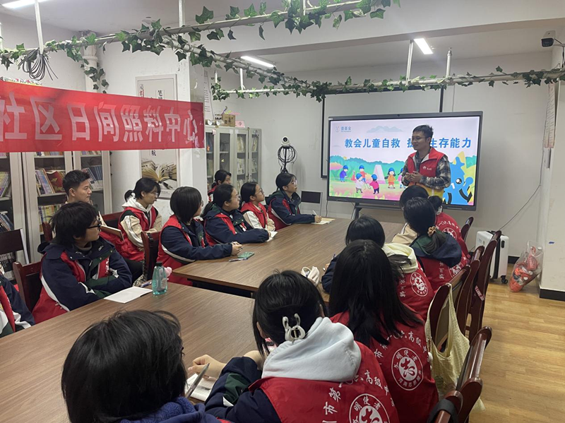 “爱益联”社会工作服务站的负责人马鸽子老师为同学们培训儿童急救相关知识