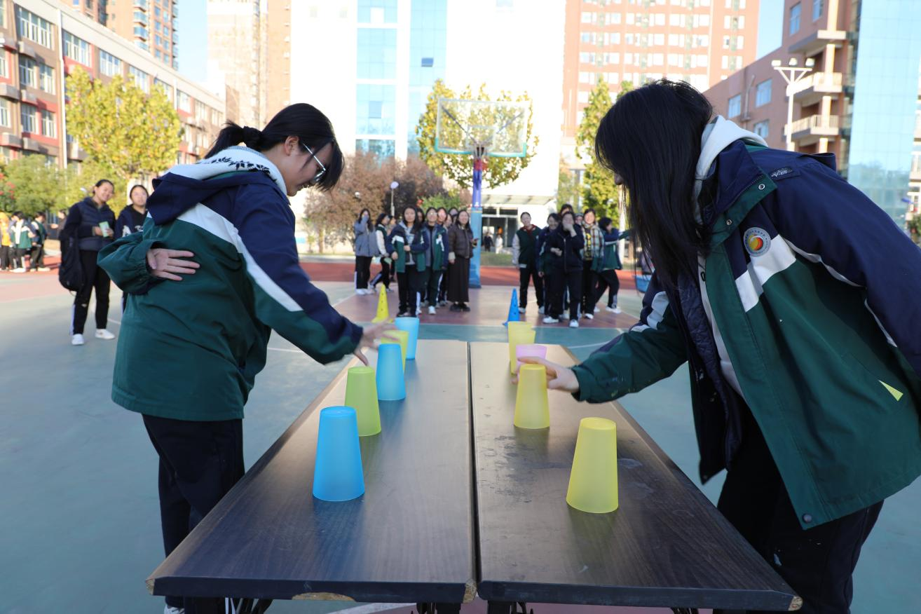 活动现场气氛热烈而温馨。“盲人过河”中,引导员的精准指令与蒙眼同学的充分信任完美契合;“一球到底”时,全员凝神聚力传递圆球,失误时的相互鼓劲与成功后的击掌欢呼交织成动人旋律。同学们在尽情欢笑中释放了集训压力,在密切协作中凝聚了班级向心力,一张张洋溢着笑容的青春面庞,成为校园里最动人的风景。