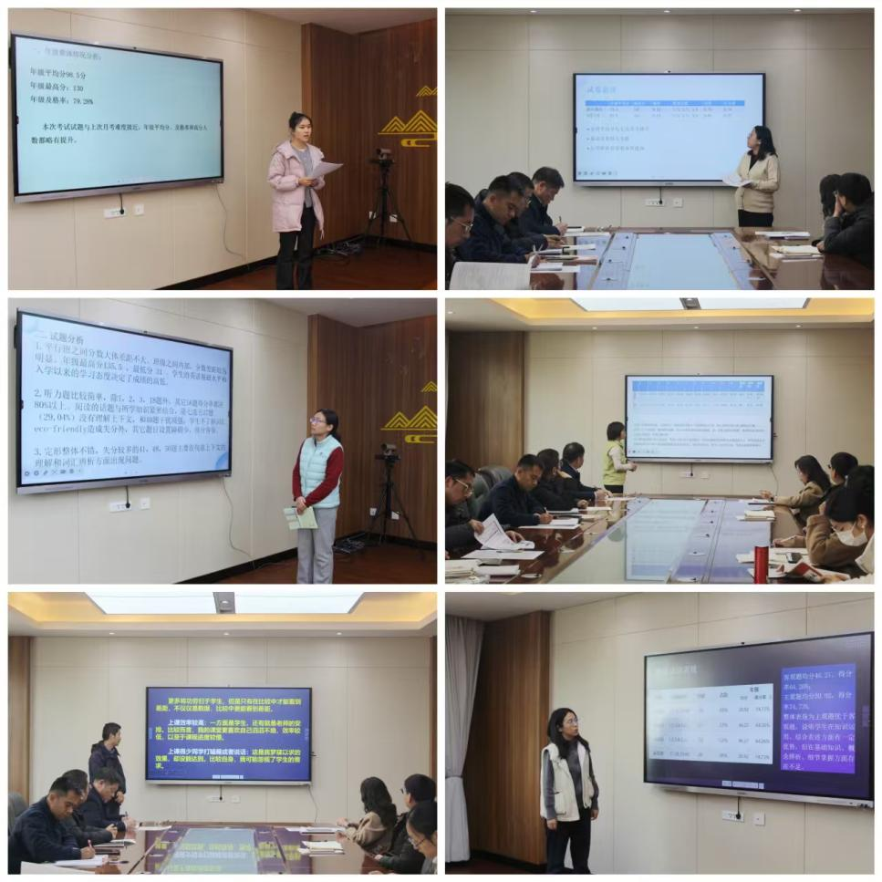 会议伊始,各学科备课组长立足数据,聚焦学科特点进行深度剖析。他们围绕试卷中的高频失分点、共性知识盲区与能力短板,查找教学环节中的不足,并分享了后续在重难点突破、课堂教学优化、分层精准辅导等方面的改进策略与落实方案。