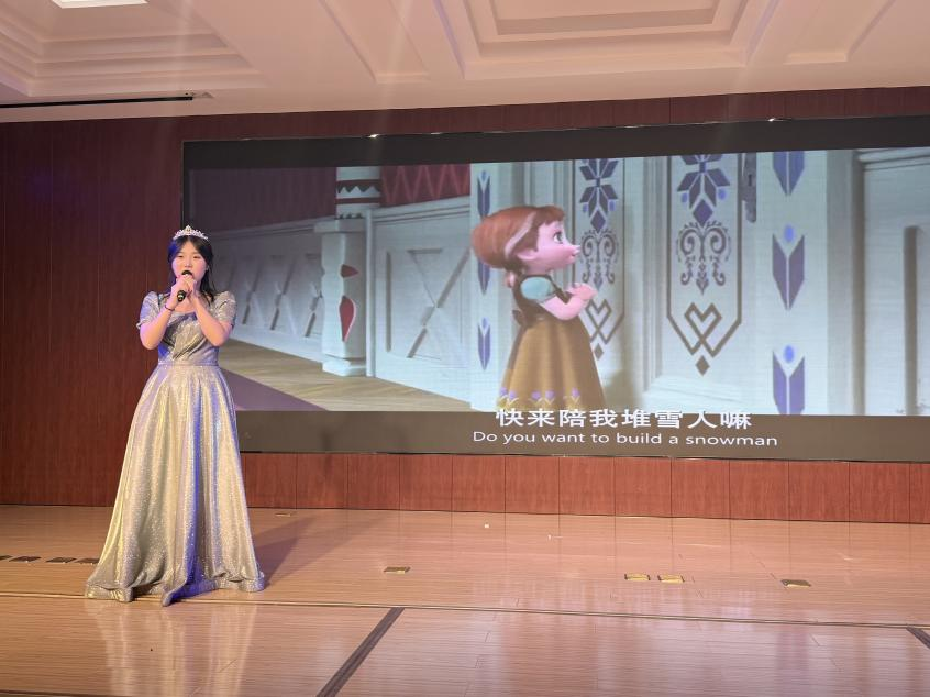 配音,是“声”与“影”的绝佳碰撞、“音”与“画”的精妙配合。在配音节目《Tough Love》和《Do you want to build a snowman》中, 同学们的精彩模仿和认真投入使动画中的人物和现实声音融为一体。无数个角色,被同学们演绎得惟妙惟肖,精彩纷呈,全场不时地响起雷鸣般的掌声。