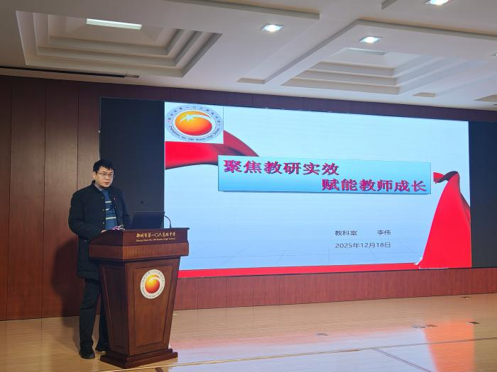 随后,教务处主任陈政与教科室副主任李伟分别发言。他们对本学期以来的教学管理、课题研究、优质课评选等工作成果进行了梳理,并通报了学校在申报国家美育特色示范校、入选河南省书香校园等方面取得的进展。围绕下一阶段工作,两位主任明确了学科建设、学业水平备考及高三质量预测等重点任务,强调要持续强化“严、细、深、实、快”的工作作风,聚焦课堂教学增效与常规管理精细化两大关键,推动学校整体教学质量实现新提升。