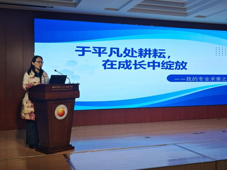 接下来,王婷婷老师作为我校地理学科教研组长、郑州市第八届名师培育对象,以“于平凡处耕耘,于成长中绽放”为主题,分享了她的专业成长经历。她结合自身参与省级优质课评选及名师培养的实践,从深度参与教研活动、精心打磨课堂教学、扎实推动课题研究等方面,系统梳理了个人发展路径,为全体教师提供了清晰可循的专业成长参考。王老师鼓励青年教师,要坚守教育初心,步履不停,在专业发展的道路上持续积淀、稳步前行。