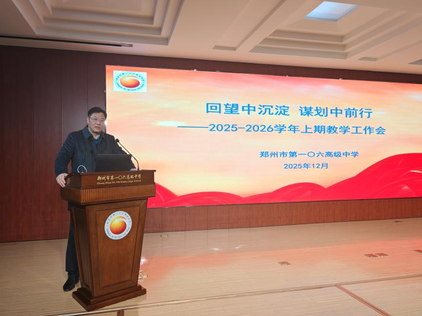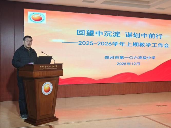 为全面复盘教学教研成效,深入总结学科建设经验,进一步明确后半学期教育教学重点任务,统一思想,凝聚共识,切实推动学校高质量发展,郑州市第一〇六高级中学于12月19日召开2025—2026学年上期教学工作会。会议旨在锚定学科组建设目标,系统梳理成绩与问题,交流分享经验与教训,扎实筑牢学校教学质量根基。