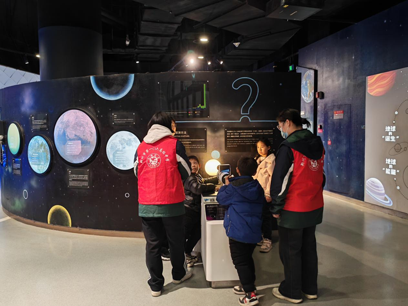 培训结束后,志愿者们迅速到岗,以饱满的热情投入服务:在宇宙展厅引导游客有序体验航天科普设备,在创想空间协助参观者操作互动装置,在童梦乐园耐心陪伴小朋友探索趣味展项,在动物家园为游客讲解自然生态知识,在探索发现展厅助力大家理解科学原理。各展区都活跃着他们忙碌的身影。