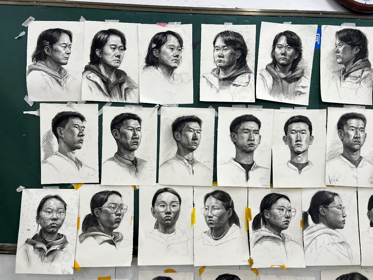 教研会上,褚楚老师对各小组作业进行了细致点评:第一、二组整体完成度良好,但需注意避免面部结构僵硬;第三组应加强必要结构的刻画;第四组在质感排线和耳朵立体感上可进一步提升,同时肯定了其形象感的优点。通过引入优秀范画临摹,学生取得了明显进步。褚老师注重因材施教,针对学生薄弱环节实施精准教学,有效提升了画面的真实感与表现力。