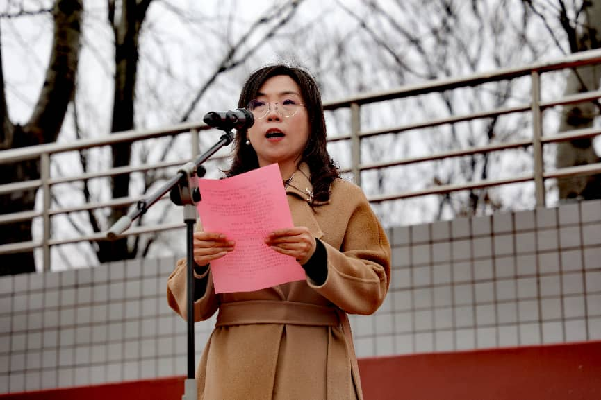 千帆竞发春潮涌,百舸争流正当时。教师代表崔安琪、学生代表罗紫苏分别以《春潮涌动千帆竞,笃行致远创佳绩》为题发言。