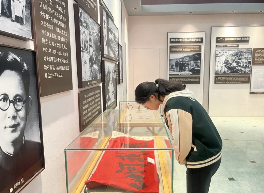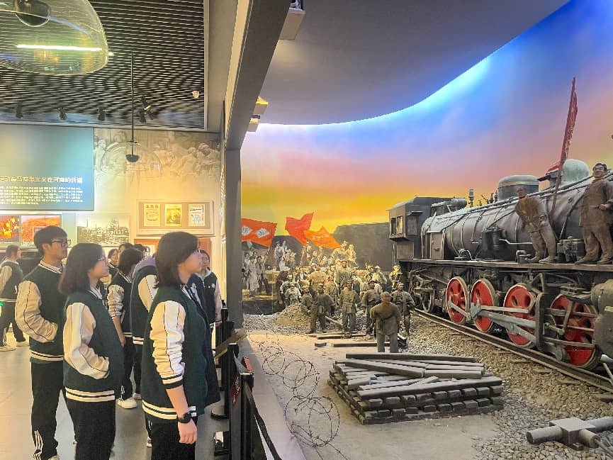 献花仪式完毕,师生们有序走进军史馆与英烈馆,开启一段沉浸式红色学习之旅。在馆内,同学们自觉放慢脚步、压低声音,仔细凝视展柜中陈列的革命遗物、老旧照片、战斗武器等珍贵文物,认真聆听讲解员讲述的一个个惊心动魄的战斗故事、一段段感人至深的英雄事迹。英烈馆内,先烈们的生平事迹与珍贵遗物静静陈列,每一段文字、每一张照片、每一件物品,都在无声诉说着他们的坚守与奉献,让在场所有人肃然起敬,更深刻懂得如今的和平生活来之不易。